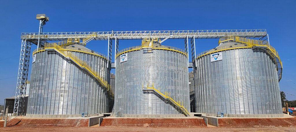 - Capacidade estática de até 15.000 toneladas por silo