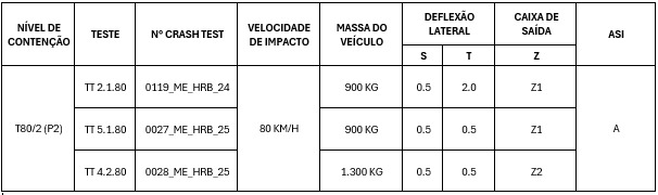 2. TABELA DE ENSAIOS CRASH TEST